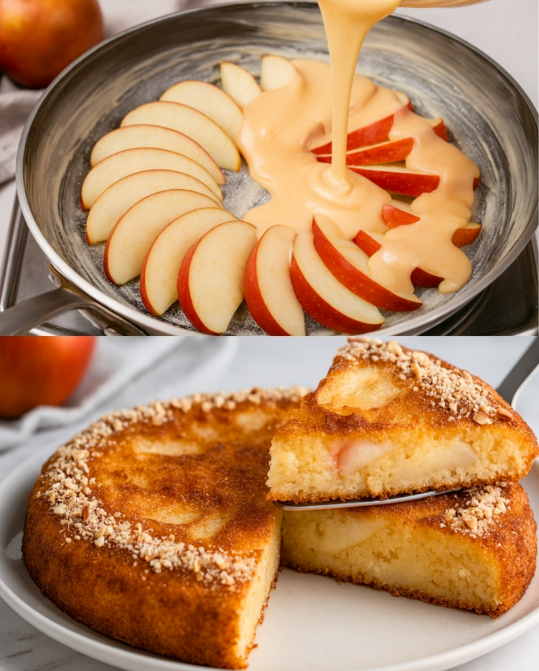Za razliku od klasičnih pečenih kolača, ovaj se priprema u tiganju, idealan za one bez pećnice ili kada želite brz desert. S karameliziranim dnom od jabuka i mekanim vanilin-spužvastim tijestom, podsjeća na spoj preokrenutog kolača i pahuljastog palačinka. Jednostavan je i ukusan, zbog čega je postao omiljen u mnogim domaćinstvima.
