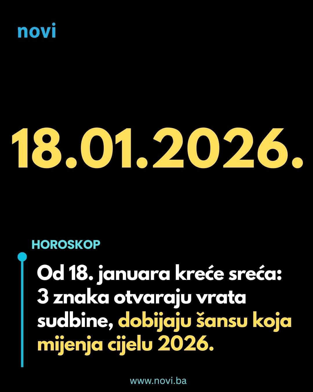 Ne dozvoli da ovaj dan prođe neprimijećeno. Energija promjene je tu, na dohvat ruke, spremna da te podrži. Sreća od 18. januara nije slučajnost, već poziv na buđenje. Prigrli promjene, vjeruj u proces i gledaj kako se tvoj život pretvara u remek-djelo o kojem si oduvijek sanjao. Tvoja 2026. godina počinje – sada.