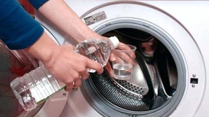 2. Dodajte smjesu u posudu za deterdžent i sipajte sirće u bubanj. Postavite normalan program punjenja najtoplijom vodom i pustite da radi.