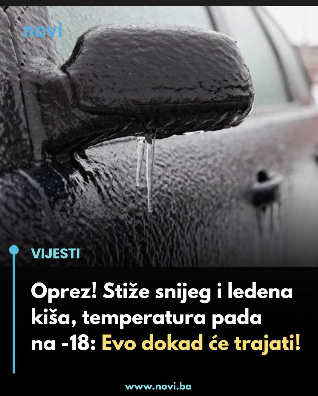 Pred nama je hladna noć, ali i postepen prelazak ka toplijem vremenu. U noći na utorak (20.01.) nad većim dijelom naših krajeva očekuje se manje oblačnosti, što će omogućiti jače zahlađenje i izražen mraz u većini mjesta. Jutarnje temperature u utorak kretat će se od -18 do -6 °C, dok će na jugu biti nešto blaže, do -1 °C.