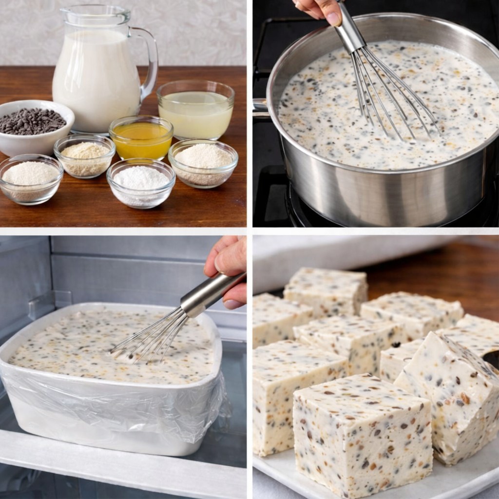 Dvije litre (što odgovara 8,5 šalicama) punomasnog mlijeka, tri žlice svježeg limunovog soka ili jabučnog octa, petnaest grama (0,5 unce) nezaslađenog želatinskog praha, dvije žlice chia sjemenki, jedna žlica provansalskog bilja, jedna žličica soli i pola žličice šećera (po želji, za ublažavanje kiselosti).