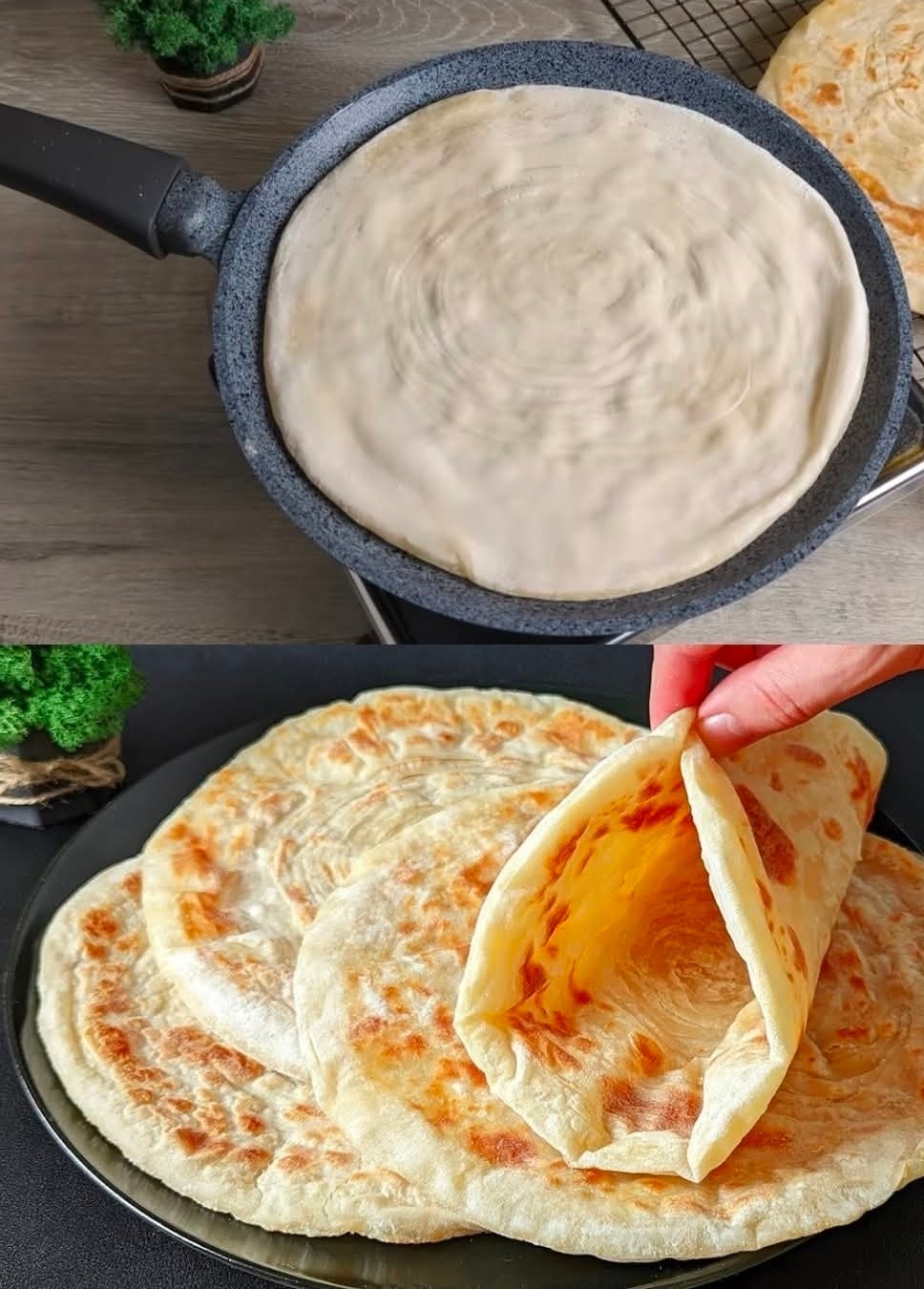 Somun: Zagrijte suhu tavu (promjera 26 centimetara ili 10 inča) na srednje jakoj vatri. Pecite svaki somun oko 3-4 minute sa svake strane, povremeno ih okrećući ili dok ne porumeni i malo se napuhne.