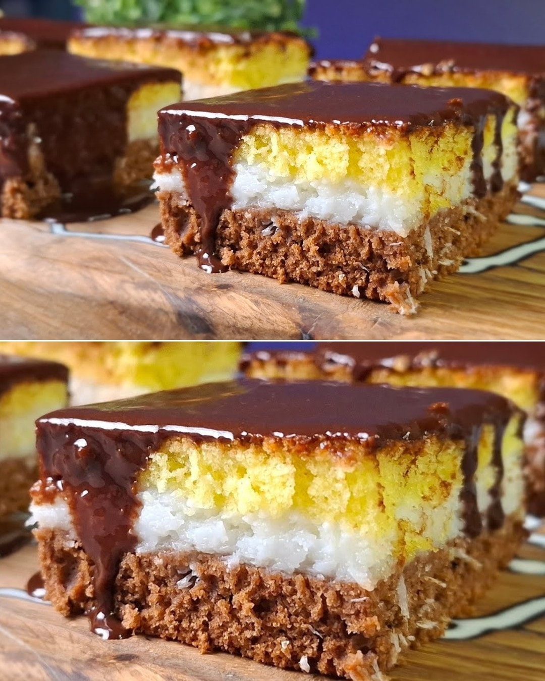 Ovaj senzacionalni kolač, koji je stekao veliku popularnost, osvojio je domaće pekare diljem svijeta zbog svoje iznimno jednostavne pripreme i impresivnih rezultata. Uz delikatne slojeve čokolade i vanilije, prošarane slatkim nadjevom od kokosa i ukrašene dekadentnom čokoladnom glazurom, ovaj recept daje desert pekarske kvalitete uz minimalan trud.