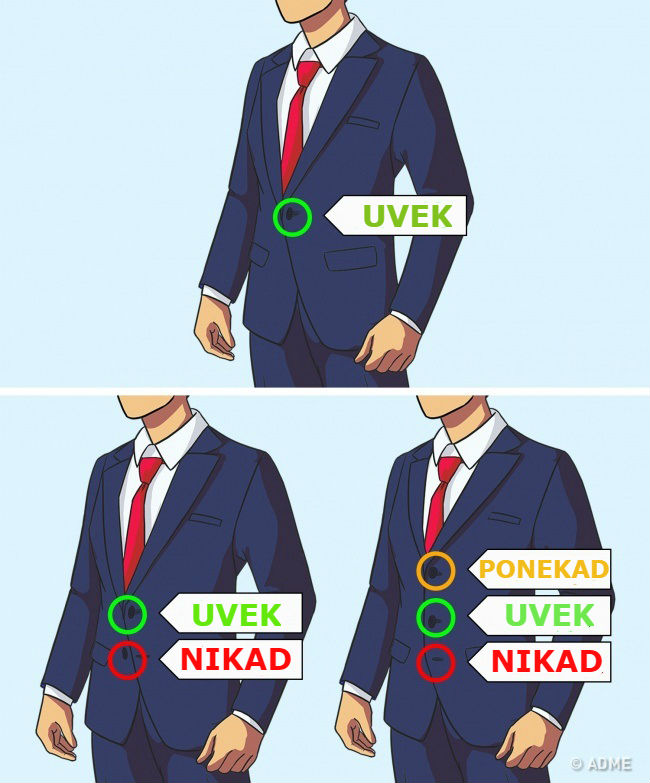 1. Srednje dugme sakoa se zakopčava uvek, gornje po želji, a donje – nikada.