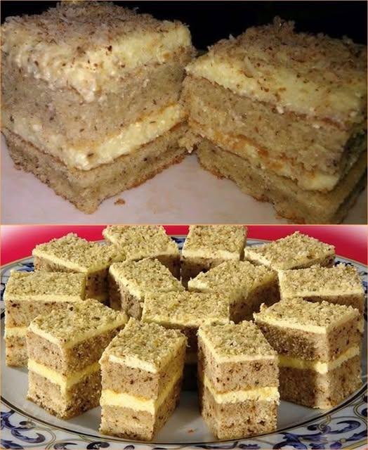 SastojciBiskvit5 jaja18 dag šećera20 dag brašna1 prašak za pecivo2 dl mlijeka2 dl ulja10 veeelikih žlica oraha Krema0,5 l mlijeka1 puding od vanilije2 žlice brašna25 dag šećera25 dag margarina PripremaZa biskvit najprije izmiksati jaja sa šećerom, dodati ulje i mlijeko i na kraju brašno pomiješano s praškom za pecivo i orasima (po potrebi dodati brašna). Smijesu […]