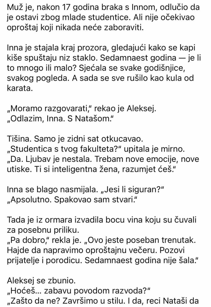 “Opet nisi stavila dovoljno soli, Ivana. Rekao sam ti već sto puta, znaš da volim kad je juha malo jača.” Dario je odložio žlicu na stol, a ja sam osjetila kako mi obrazi gore. U tom trenutku, dok sam stajala pored štednjaka, s rukama još mokrim od pranja povrća, poželjela sam nestati. Nije to bila […]