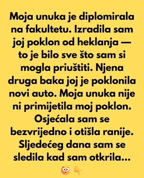 Moja je unuka diplomirala na fakultetu. Izradila sam joj poklon od heklanja — to je bilo sve što sam si mogla priuštiti. Njena druga baka joj je poklonila potpuno novi automobil. Moja unuka nije ni primijetila moj poklon. Osjećala sam se bezvrijedno i otišla ranije. Sljedećeg jutra probudila sam se zbog poziva — bio je […]