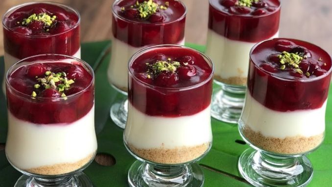 U svaku šoljicu stavite po 1 kašiku keksa, pa malo uskom šoljicom poravnajte dno, dodajte 2-3 kašike kreme, sačekajte da se voćni sos ohladi, sipajte na kremu da se ohladi.