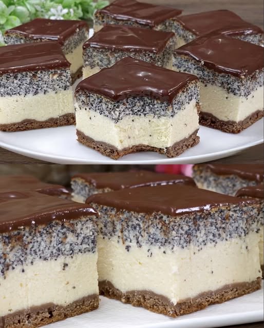5. **Slaganje kolača:** Tijesto rasporedite u duguljasti kalup ili pravougaonu tepsiju. Prelijte ostatkom bijele smjese, a zatim dodajte smjesu s makom.