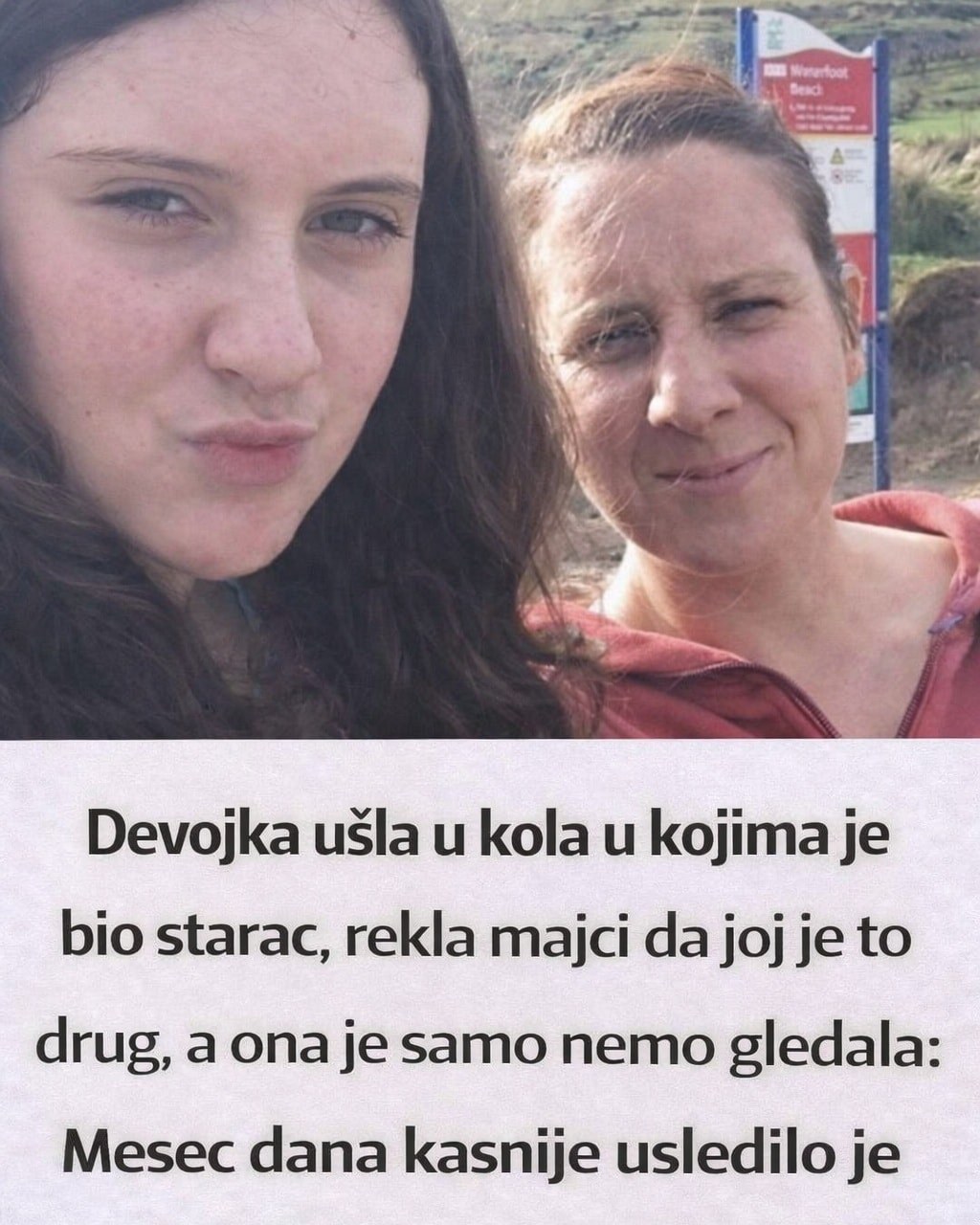 “Okrenula sam se i videla je kako izlazi iz prodavnice. Pitala sam je s kim je, a ona je rekla “sa Derekom”. Rekla je da je tu u kolima i pozvala me da ga upoznam”, priča majka. “Spustio je prozor i nikada neću zaboraviti taj prizor. Starac. Izgledao je starije od mog oca. Bila sam u takvom šoku da sam mu samo rekla: “Nadam se da je dobra”. Da sam tada znala šta se dešava, on nikada ne bi izašao sa te pumpe sa mojim detetom u kolima.”