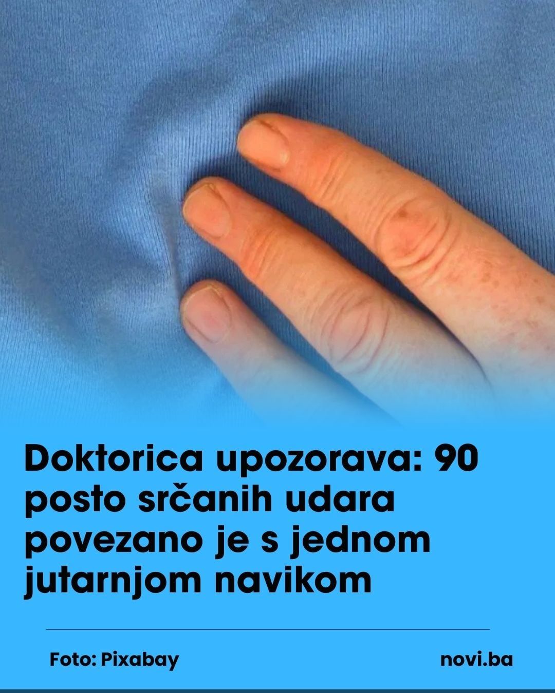 Bolesti srca i krvnih sudova vodeći su uzrok smrti u svijetu. Iako su mnogi svjesni da prehrana i stres imaju veliku ulogu, jedna doktorica tvrdi da se čak 90 posto srčanih udara može povezati s jednom jutarnjom navikom koja nema veze s hranom.