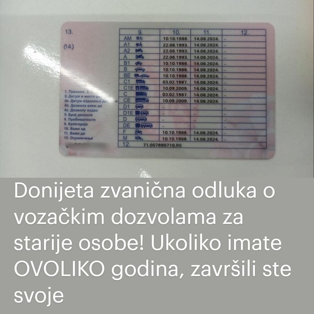 Takođe je određeno da vozačke dozvole i za automobile i za motocikle ostaju na snazi na period od 15 godina.