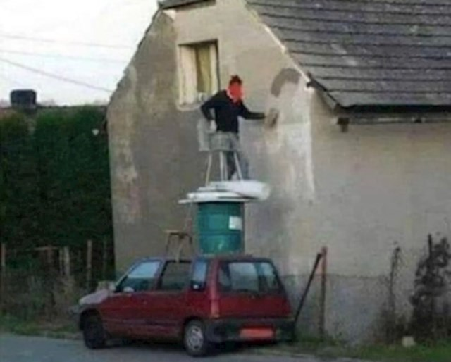 Netko je u susjednoj Bosni i Hercegovini snimio potpuno sulud prizor. Čini se da je ovaj tip naumio brže bolje pokrpati neka oštećenja na fasadi kuće, ali nije imao ljestve pri ruci.
