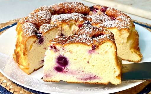 Izvadi iz kalupa, prebaci na tanjir i po želji pospi šećerom u prahu ili dodatnim voćem.