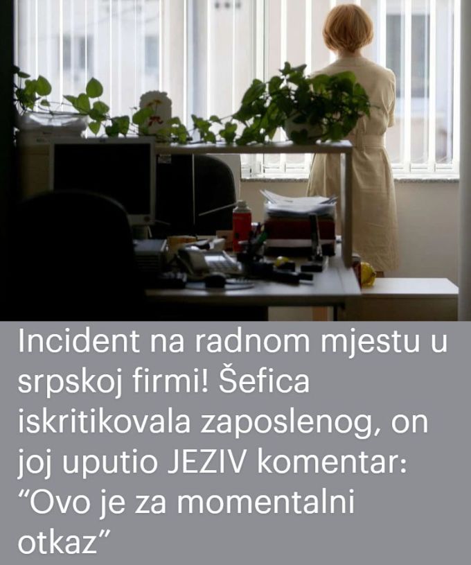 Srpkinja, koja radi u jednoj firmi u Srbiji, nedavno se našla u neprijatnoj situaciji – nakon što je, kao nadređena, kritikovala svog zaposlenog zbog lošeg obavljanja radnih zadataka. Njegov odgovor, koji ju je šokirao, naveo ju je da odmah pokrene momentalni otkaz.