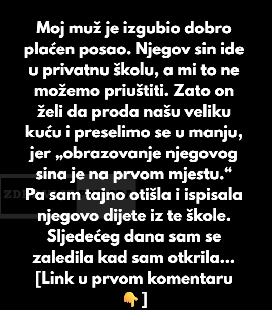Sljedećeg dana, njegov sin je došao kući u suzama, drhteći. To je zato što sam ga tajno ispisala iz te skupe škole.