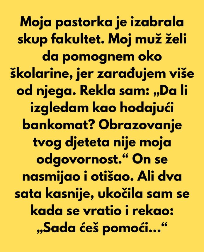 „0dbijam da platim školarinu svojoj pastorki, nisam njen lični bankomat.“