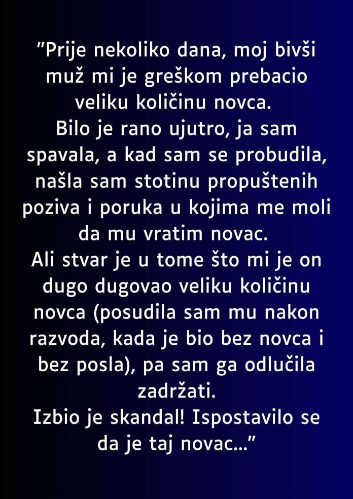 Prije nekoliko dana, moj bivši muž mi je greškom prebacio veliku količinu novca.