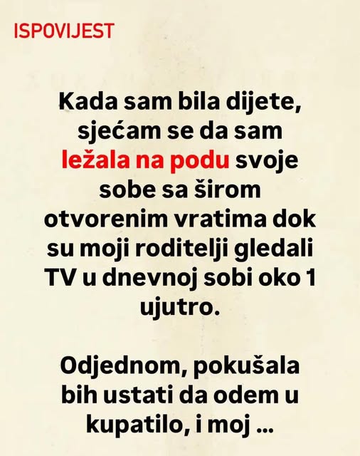 – Kada sam bila dijete, sjećam se da sam ležala na podu svoje sobe sa širom otvorenim vratima dok su moji roditelji gledali TV u dnevnoj sobi oko 1 ujutro. Odjednom, pokušala bih ustati da odem u kupatilo, i moj mozak bi gotovo simulirao to. Nije mi palo na pamet sve do petog puta da nikada zapravo nisam ustala.