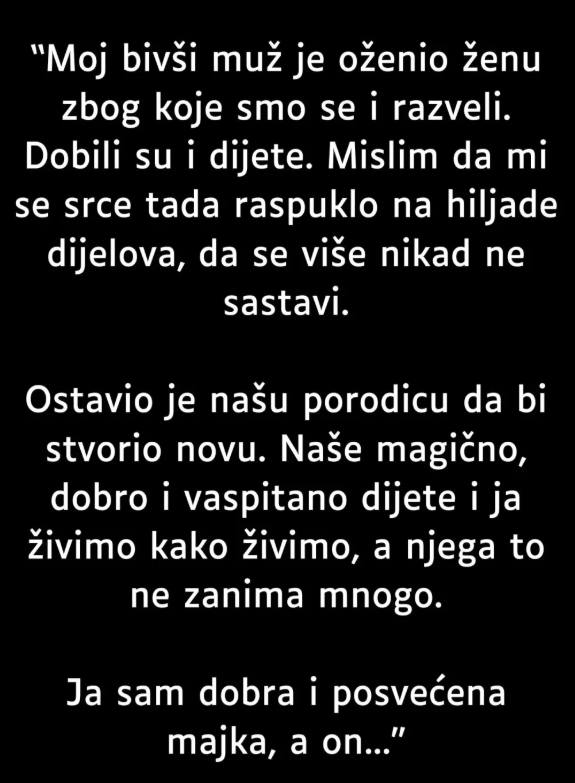 “Moj bivši muž je oženio ženu zbog koje smo se i razveli. Dobili su i dijete. Mislim da mi se srce tada raspuklo na hiljade dijelova, da se više nikad ne sastavi.