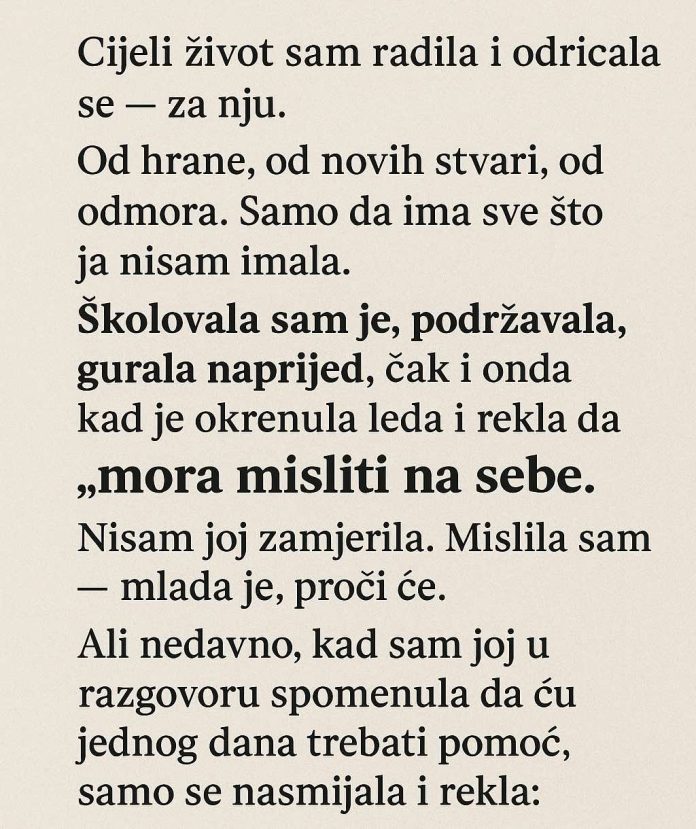 Cijeli život sam radila i odricala se — za nju.