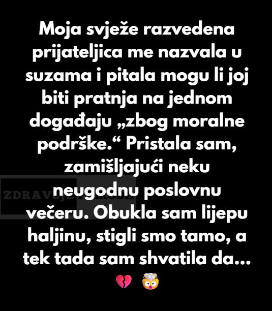 Moja prijateljica, svježe razvedena, nazvala me u suzama i pitala mogu li joj biti pratnja na jednom događaju „zbog moralne podrške.“