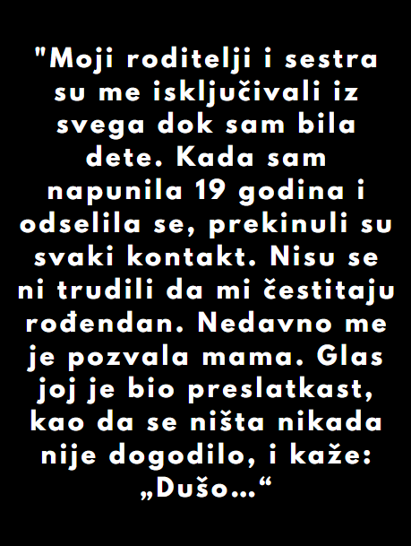 “Moji roditelji i sestra su me isključivali iz svega dok sam bila dete…”
