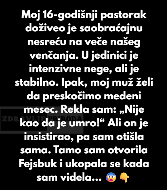 Moj 16-godišnji pastorak doživeo je saobraćajnu nesreću na veče našeg venčanja. U jedinici je intenzivne nege, ali je stabilno. Ipak, moj muž je želeo da preskočimo medeni mesec. Rekla sam: „Nije kao da je umro!“ Ali on je insistirao, pa sam otišla sama.
