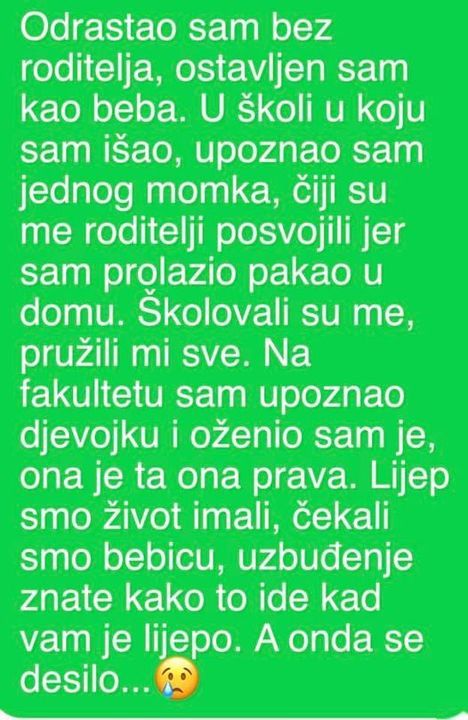 Onda me život još jednom stavio na iskušenje i oduzeo mi jedino što me veselilo. Oduzeo mi ih obje. Samo da vam kažem da grlite i ljubite svoje najbliže.