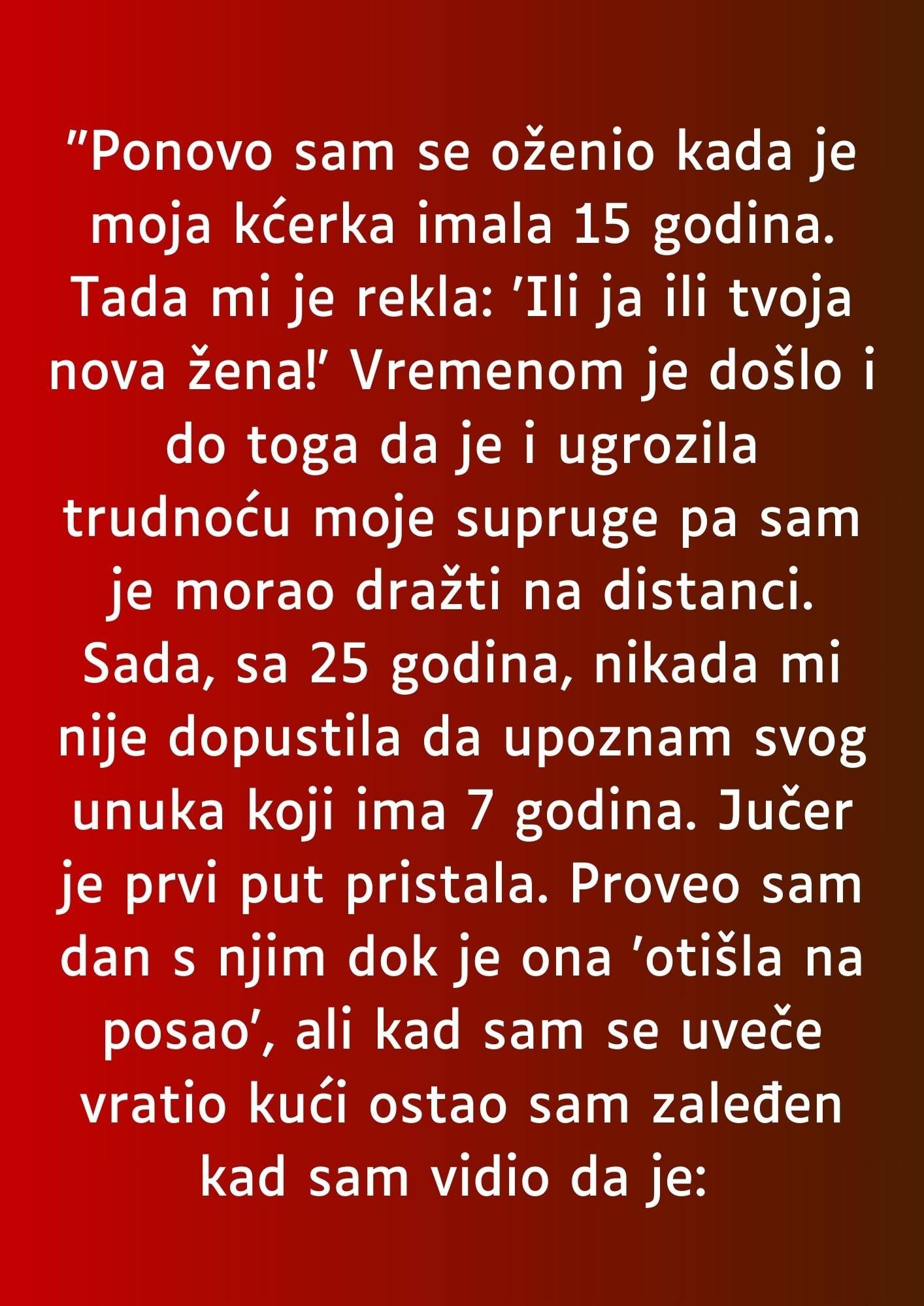 Sada, sa 25 godina, nikada mi nije dopustila da upoznam svog unuka koji ima 7 godina. Jučer je prvi put pristala.