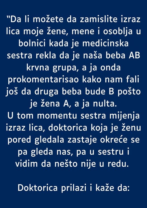 Pitao sam, tiho, pomalo nesigurno. Rekao sam na glas ono što me kopkalo. “Ne može biti da dijete ima tu krvnu grupu.” U tom trenutku – vrijeme je stalo. Sestra je prestala disati, doktor se okrenuo prema meni, ozbiljan kao nikad. I tu je počela prava drama. Ne ona iz filmova. Ona stvarna, koja udara pravo u grudi i ne prestaje.