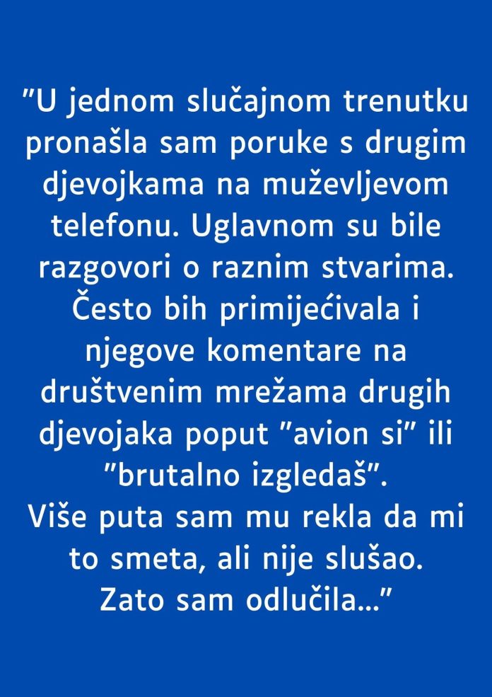 “U jednom slučajnom trenutku pronašla sam poruke s drugim djevojkama na muževljevom telefonu. Uglavnom su bile razgovori o raznim stvarima.