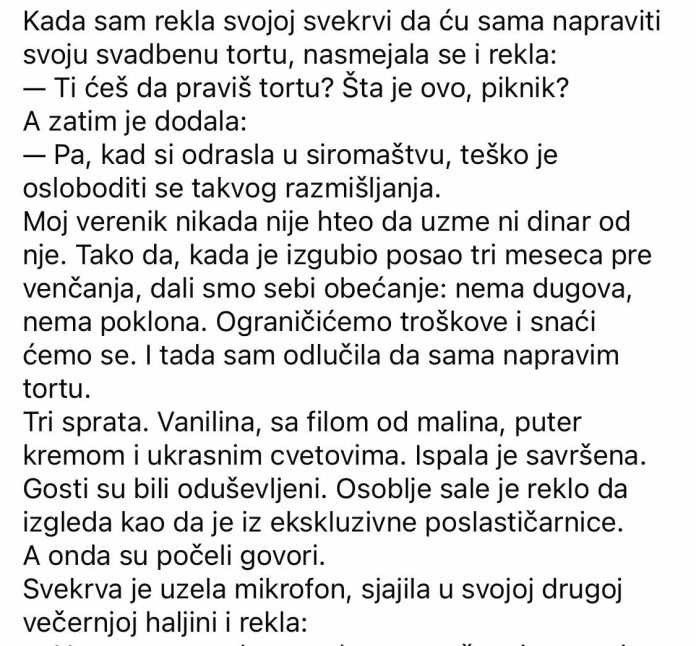 Venčanu t0rtu koju sam sama napravila — svekrva je prisvojila zasluge.