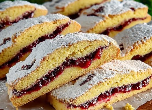 Umutiti jaje sa solju pa dodati šećer, ulje i koricu limuna. Pomiješati brašno sa praškom za pecivo i umijesiti mekano tijesto. Razvući ga na debljinu oko 5 mm, polovinu premazati džemom i preklopiti drugom polovinom. Lagano pritisnuti rubove, pa isjeći na pravougaonike širine 3–4 cm. Poredati na pleh obložen papirom i peći 15 minuta na 180°C dok ivice lagano ne porumene. Ohladiti i posuti šećerom u prahu.