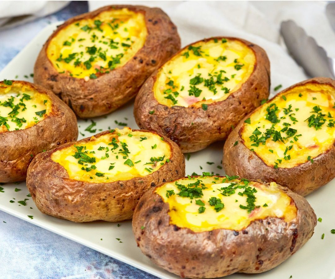 Vrati punjene krompire u rernu i peci još 10–15 minuta, ili dok se bjelance ne stegne, a žumance ostane mekano (ili po želji).