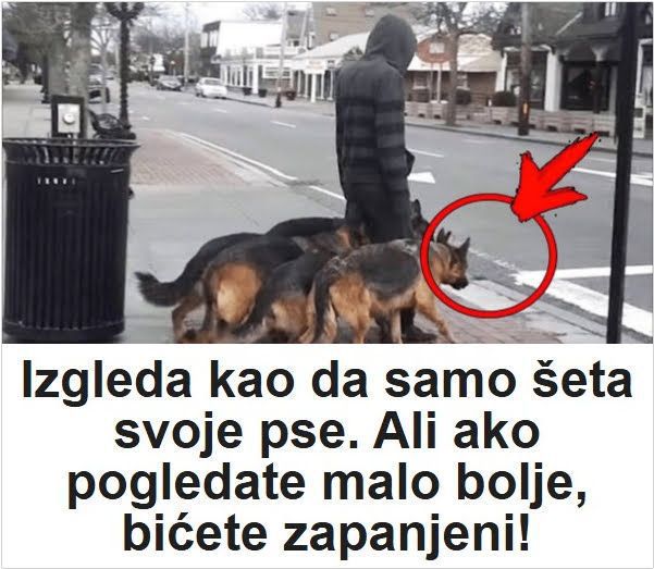 Na videu vidimo kako on hoda gradom sa pet njemački ovčara koji ga prate u stopu. Oni ne pokušavaju da pobjegnu ili da odu na stranu. Jednostavno ne znamo kako mu ovo uspjeva.