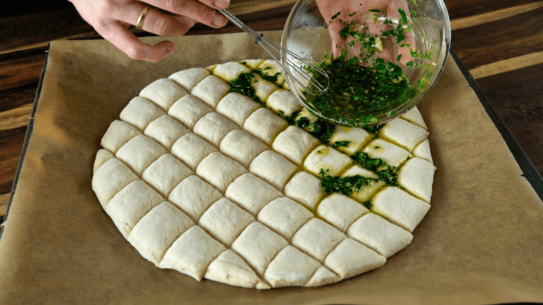 Ako tražite jednostavan, a izuzetno ukusan recept od dizanog tijesta, ovaj hljeb/pogača je pravi izbor. Mekano i elastično tijesto, miris bijelog luka i svježih začina, uz lagano zapečeni kačkavalj, čine savršenu kombinaciju za doručak, večeru ili kao prilog uz razna jela. Priprema je laka i ne zahtijeva posebne vještine, a rezultat je uvijek odličan.