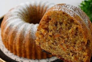 Kada se kolač ohladi, izvaditi ga iz kalupa i posuti šećerom u prahu.