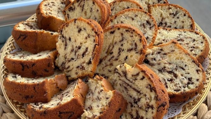 Dodamo brašno, vaniliju i prašak za pecivo i promiješamo. Na vrh dodamo čokoladu u granulama i nastavimo miksati.