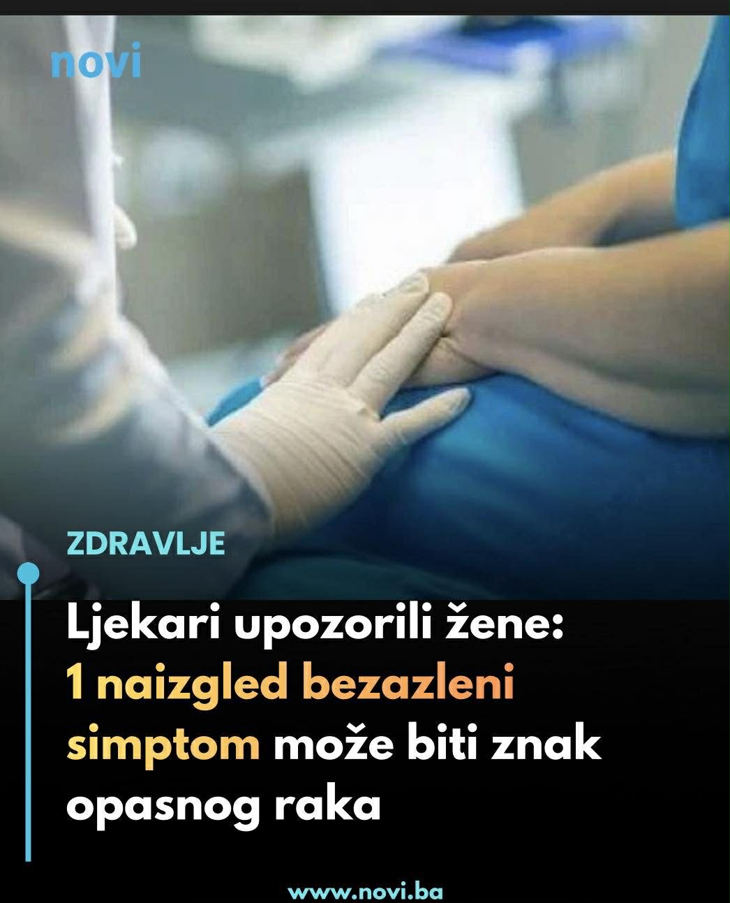 Ljekari upozoravaju da jedan naizgled bezazlen simptom kod žena može biti znak da je vrijeme za pregled. Ovakva upozorenja ne služe tome da izazovu strah, već da se na vrijeme isključi ono najgore. Upravo zato stručnjaci stalno naglašavaju da je bolje provjeriti i imati mir nego čekati i ignorisati promjene, piše Unilad.