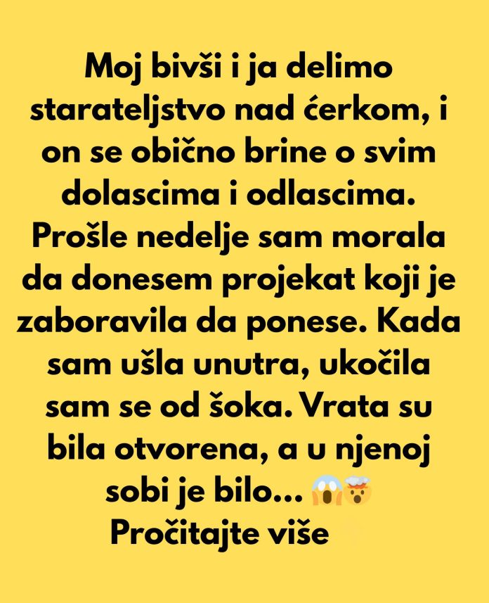 Moj bivši i ja delimo starateljstvo nad našom ćerkom, a pošto se on obično bavi dolascima i odlascima, nikada zapravo nisam bila u njegovom novom stanu. Nisam tome pridavala mnogo značaja — dok god je naša ćerka delovala srećno, pustila sam da tako ostane. Ali prošle nedelje, kada sam došla da joj donesem školski projekat koji je zaboravila, sve se promenilo.
