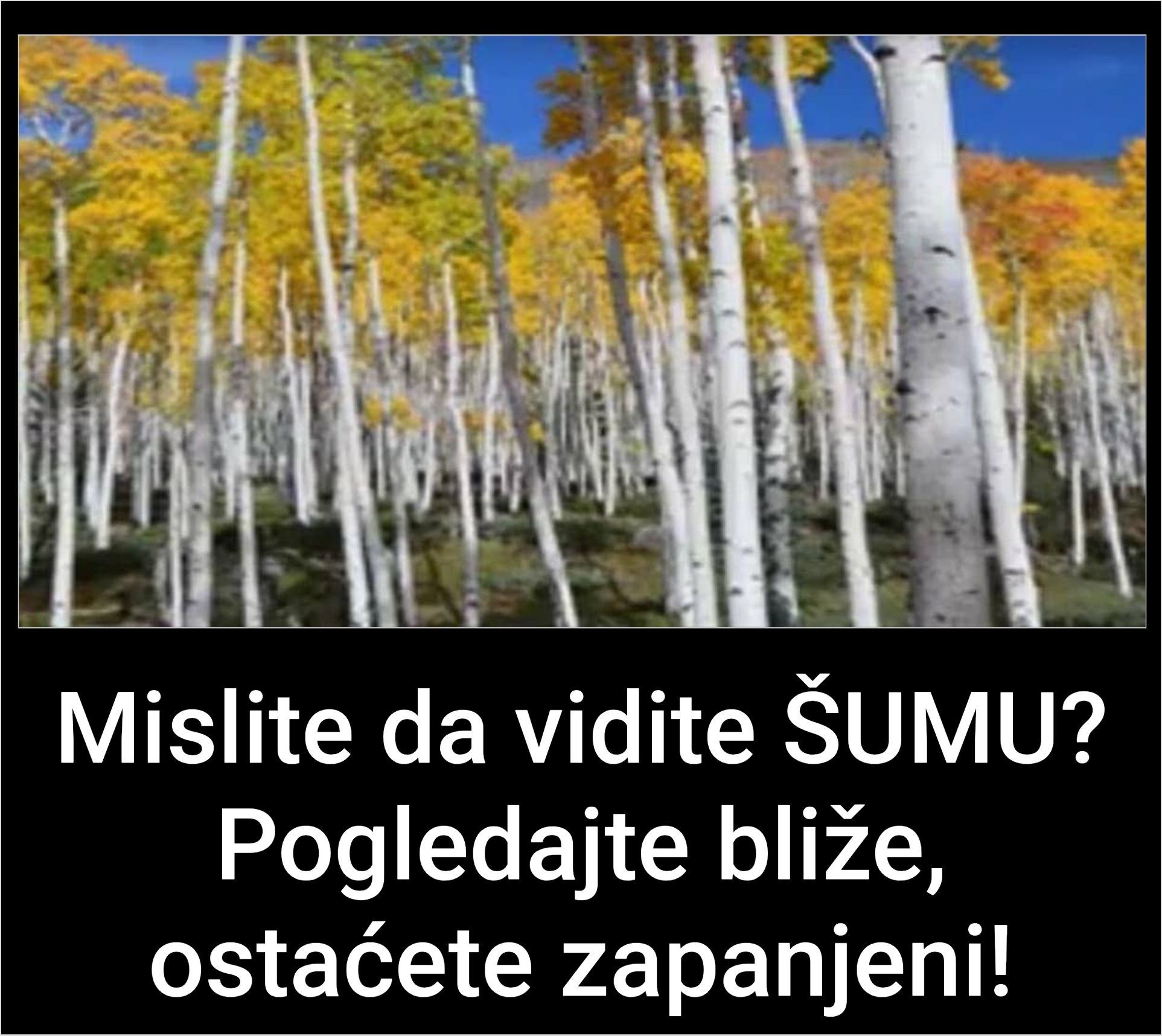 POGLEDAJTE DOBRO. MISLITE DA JE NA SLICI ŠUMA? Pogledajte boljeU zapadnoj Americi raste drhtavi aspen i prostire se na površini od 80 fudbalskih terena i težine su oko 5.900 tona.