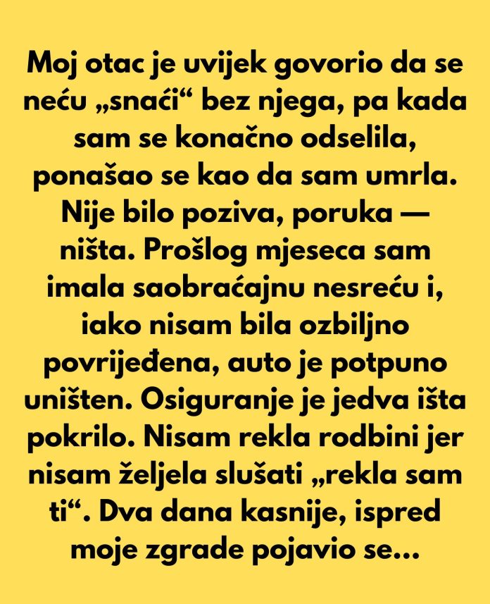 Moj otac je uvijek govorio da se neću „snaći“ bez njega, pa kada sam se konačno odselila, ponašao se kao da sam umrla. Nije bilo poziva, poruka — ništa.