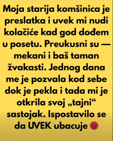 Moja starija komšinica je preslatka i uvek mi nudi kolačiće kad god dođem u posetu. Preukusni su — mekani i baš taman žvakasti.