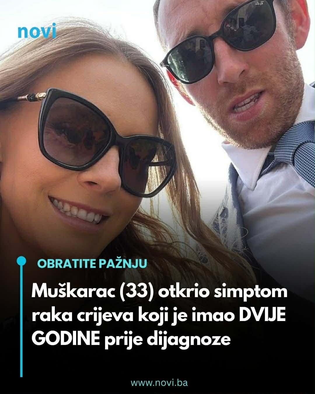 Otac dvoje djece otkrio je upozoravajući znak raka crijeva koji se pojavio dvije godine prije nego što mu je dijagnosticirana bolest sa samo 33 godine, piše Daily Mail.