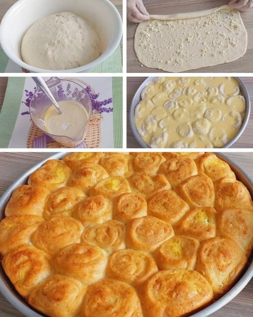 9. Za preliv umutite kajmak, jaja, jogurt i so, pa prelijte preko bureka.