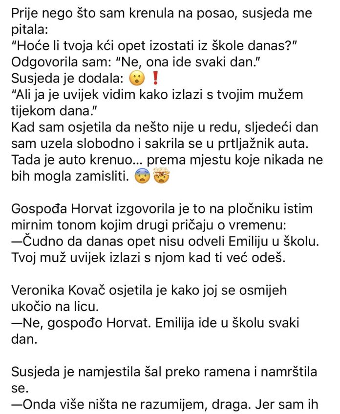 Jer ponekad majka sazna istinu ne kada vidi muža kako je vara, već kada čuje susjedu kako kaže nešto sitno, gotovo ležerno, i konačno se usudi slijediti tu nelagodu do točno onog mjesta gdje joj je netko pokušavao ukrasti kćer.