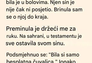 Obećao sam joj da ću biti uz nju. Od tog dana, posjećivao sam je svakoga dana i donosio joj tople obroke, nadajući se da ću joj barem malo olakšati teret. Srećom, sada joj je mnogo bolje i pronašla je udobniji posao.