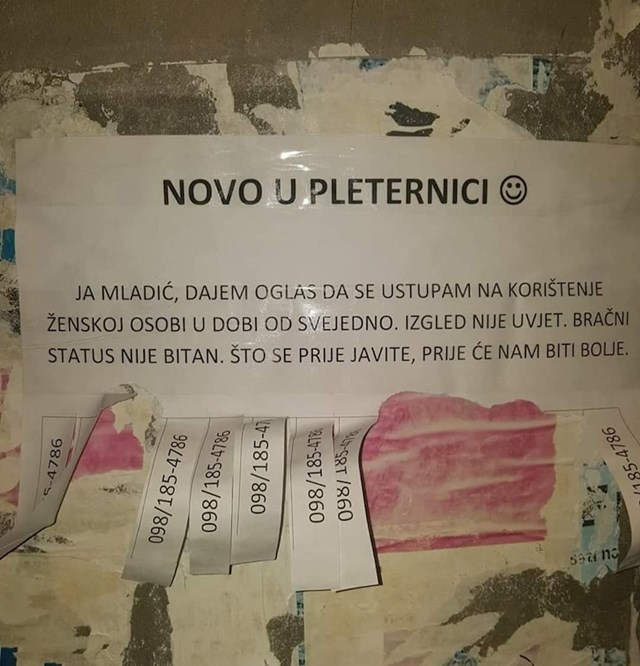 Netko je u Pleternici snimio nesvakidašnji oglas, lik je dao ponudu koja se ne odbija Novosti 15 Januara, 202615 Januara, 2026amila Neobična fotka stiže nam iz Pleternice, a prikazuje vrlo nesvakidašnji oglas jednog nepoznatog autora koji je bio toliko darežljiv i odlučio se ustupiti drugima na korištenje…😆 LAJK.HR