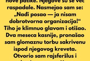 I stoji on tu — ponosan, siguran da je uradio dobru stvar. A ja ne znam da li da se smijem ili da plačem.